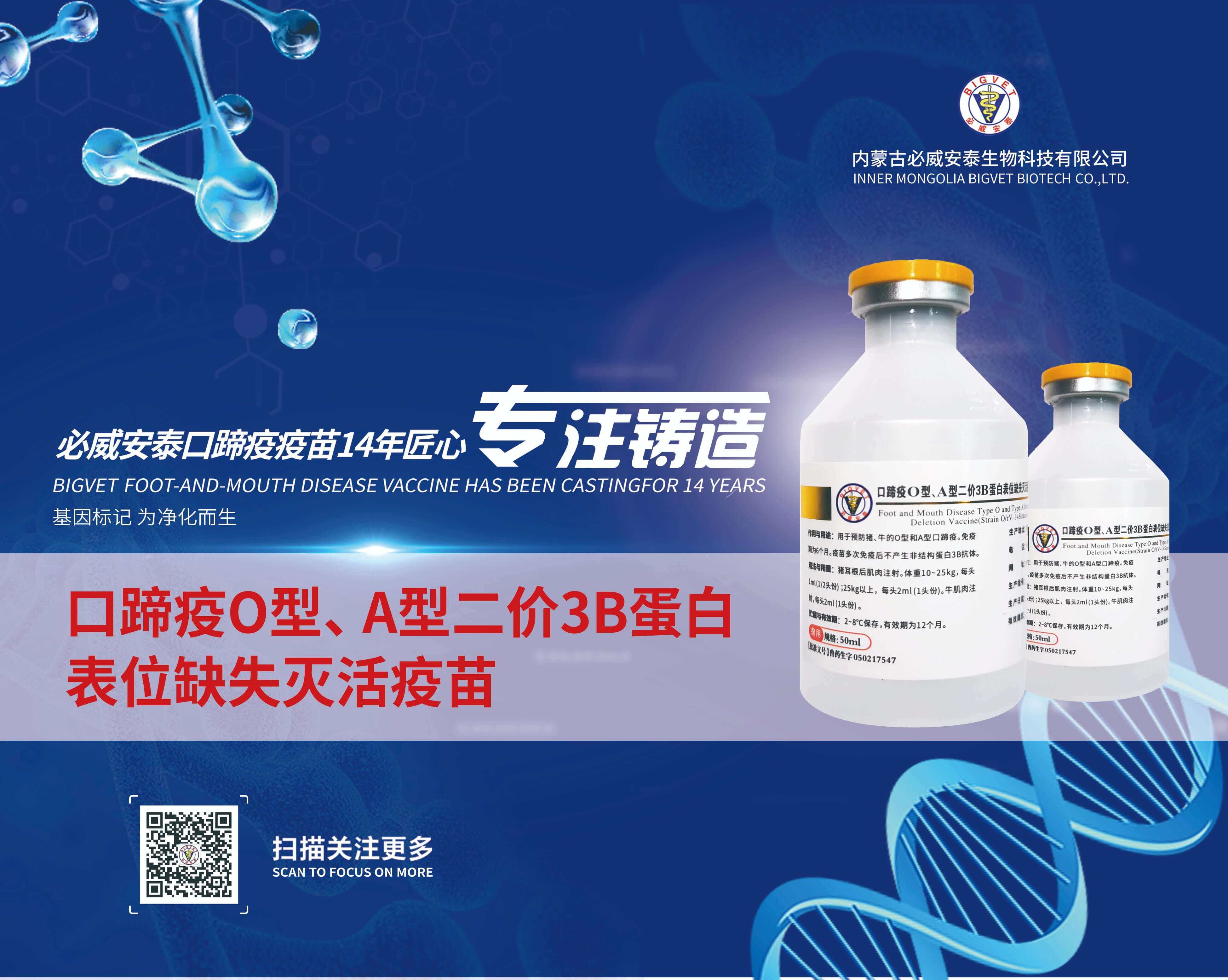口蹄疫O型、A型二價3B蛋白表位缺失滅活疫苗(O/rV-1株+A/rV-2株)